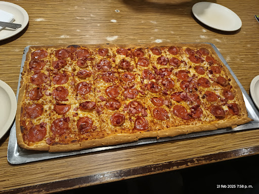 Read moreLa primera vez que visito este lugar, y no regresaría, en primera el espacio es muy reducido, no hay distancia prudente entre mesas y peor aún íbamos en pareja y no nos quisieron dar un espacio más amplio, pero literal en nuestra mesa o cambia nuestro plato o la caja de pizza (te la sirven en la caja) En cuanto al servicio, siento que te enganchan con un sutil "va con extra queso... Verdad" y si vas diciendo que si a todo uff no me quiero imaginar a cuanto sube la cuenta. En resumen, el lugar pequeño el servicio no muy bueno y la pizza no es de las mejores que he comido, a eso sumarle que comí incomoda y de prisa por la cantidad de gente que habíamos en el lugar, no lo...