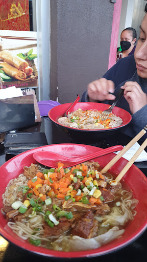 Simplemente el mejor ramen de Qro. No he encontrado uno mejor y miren que he comido bastantes, muchos se enfocan en el ramen japonés, el que lleva naruto, alga y huevo, la verdad algo insípidos en comparación a este ramen chino. Cuando vallas debes tomar en cuenta que tienen mucha gente, tal vez tengas que formarte y esperar mesa, los mejores horarios para ir el fin de semana son: de 9 a 10am y de 6 a 8pm que cierran, evitarás mucha gente. Todo aquí es muy rico, los mejores son el ramen de wontong y el de res, los shiao Long bao (domplings, la orden es de 3 y están muuuyy buenos) te los sirven en una pequeña vaporera de bambú y si pides varias ordenes esta vaporera tendrá varios pisos. El pan chino es una delicia, muy suaves y de relleno abundante, te los sirven bien calientes al vapor pero si los quieres para llevar, pídelo fríos, en casa los calientas al vapor porque si no se ponen duros! Realmente una delicia! Regresando al ramen, no se si los fideos sean comprados o ellos mismos los preparen, pero es un fideo que no sabe a masa o chicloso, todos los sabores convergen en perfecta armonía en tu plato de casi un litro cuando se trata del ramen grande, en el caldo se pueden distinguir diferentes sabores según el ramen que pidas, pero el que impera es el picosito del gengibre y lo rasposito de un chile seco que le ponen, te vas a encontrar también que lo sirven con cebollin, elotito y zanahoria! Haciendo de tu plato una mezcla de sabores y olores sumemente genuina, deliciosa e intensa! En cuanto al precio, para mi, no es barato pero se ha convertido en mi comida favorita, cuando voy con mi esposa y con mi hija me gasto entre 550 y 600 pesos y cuando voy solo, me gasto lo mismo porque me piden que les lleve. Un protip: no pidas para llevar, no escatiman en plástico y creo que para llevar reducen los tamaños de los platos, (si pides un mediano es igual a que si pidieras un grande, solo para llevar) Un ultraprotip: no es raro que no te termines el plato, ya que en el restaurante te lo sirven abundantemente, lo que no te termines pídelo para llevar y tendrás para la cena. Un ultramegaprotipmadafaka: llega come ahí y si no te lo acabas llévate tu "tupper wey", como dije no escatiman en plástico y unicel y siempre es bueno que haya menos en el planeta. Les puse 4 estrellas porque las meseras en general se confunden en las órdenes, tardan en atenderte y una ocasión nos quisieron dar órdenes de rollos primavera (esos también están bien pinches deliciosos) que no pedimos, mejorando eso, se convertiría para mi en uno de los mejores lugares para...
