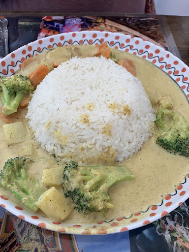 El primer bocado fue una explosión de intensidad perfectamente equilibrada. El cremoso y sedoso 𝗹𝗲𝗰𝗵𝗲 𝗱𝗲 𝗰𝗼𝗰𝗼 abrazaba la profundidad de la pasta de curry, mientras el picante se desplegaba con elegancia, sin avasallar, pero dejando claro que estaba presente. Los trozos de pollo, tiernos y jugosos, absorbían cada matiz de la salsa como si hubieran nacido para ello. Y luego, ese final: un retrogusto aromático, con notas de albahaca tailandesa y un ligero dulzor que se deslizaba como un susurro, cerrando la sinfonía de sabores con maestría.