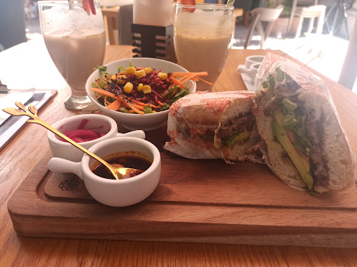 The best dish was enchiladas. But they reduced the menu and left out enchiladas in their new menu. The best dish at this point are tacos. 5+⭐️⭐️⭐️⭐️⭐️. They’re big, full of filling, fresh and just yummy! We also tried sandwiches but they put so little of the meat replacement and instead they put way too much frijoles and the sandwiches taste basically as there is only beans inside. They’re located very central in downtown and share with other restaurants, an inside garden, which looks very cozy but they always play loud music and not relaxing-restaurant kind music but hip hop or other “trendy” music that you hear in fast-food places. Ps we’re young people ourself but it’s very disturbing to eat in a decent restaurant and having fast-food-music playing so loud. Also we found that the waiters and waitresses are not attentive and don’t provide good service. It’s the same McDonalds treatment as their music, which doesn’t align with the whole concept. We only come whenever we crave for deliciousness tacos but we eat and leave right away without sitting and enjoying the place because it’s annoying and disturbing. I hope they do something about it so we can come...