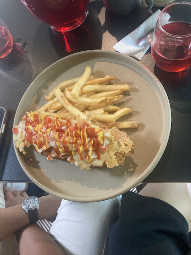 Read moreEaten here a few times, which we like to do before reviewing. Not as good as last time 7 mos ago. Beyond hotdog tasted powdery and the bun stale falling apart. The vegan fettuccine was ok but heavily cheese sauced with asparagus but didn't care for the ham substitute. Prob a 3 out of 5 dish. Last time the fries were good, guacamole looked nice that a friend had, hotdog was good that time, and the decked sandwich was tasty. Might be best to try that next time. Love that they are dog friendly. Pricey also for plates but willing to pay more...