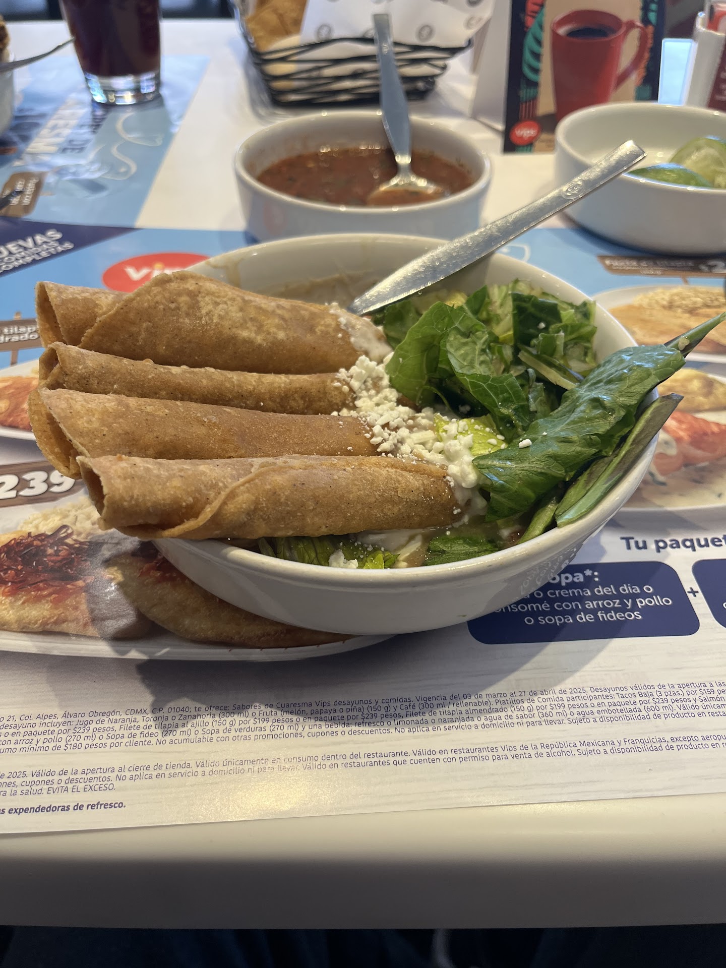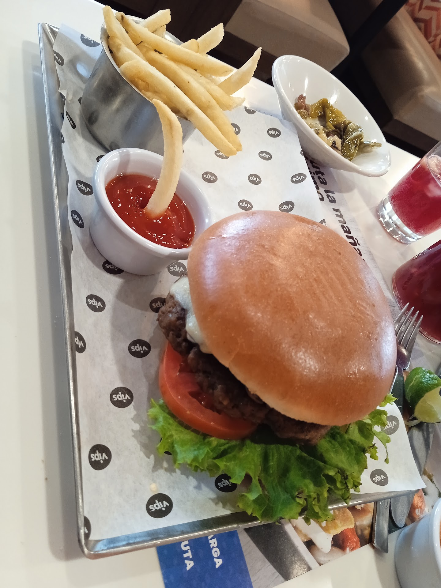 VIPS normally good - this location - terrible waitstaff slowly shuffling around ignoring the 3 couples who showed up at the reception waiting to be seated. Finally get to a table, sit down only to be ignored again. After awhile a slow-moving waitress brought menus. I ordered a sandwich -turkey & panela w dressing. It takes 40 minutes to arrive. French fries stone cold. But I hadn’t eaten all day, starving, I tuck in. The sandwich has 1 slices of what’s supposed to be turkey., but since it was thinner than parchment, I am not sure. There was a piece of panela on each half about 1” square. But the sandwich was jam-packed with sweet chiles (chiles morón) that was basically what it was - a chile sandwich - had nothing in common with the menu description . My daughter had a similar disappointing platter. Together we had about 70 cents worth of food and got a bill for $33.00 USD $530 pesos. ...