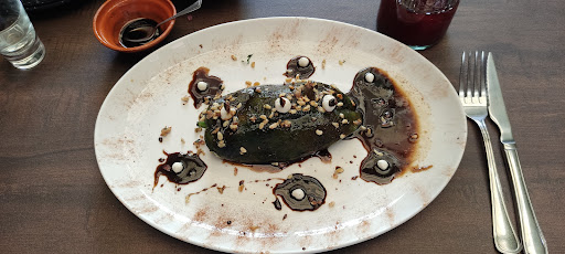 My food (Chile poblano relleno de escamoles caramelizado con piloncillo) was fresh, of very good quality and it was very nicely presented. Nonetheless, it was - in my very personal opinion - too sweet for a main dish. The idea of "caramelizado con piloncillo" was to tempting not to try, but the sugar killed almost all other possible flavours. I was disappointed. My fiancé had "Tres moles con pollo", which was of very good quality but had a disappointing taste. Only the darkest mole was o.k. We missed any kind of interesting taste we had experienced even in very economic places before. The middle coloured and light coloured moles of the three do not deserve to be mentioned, unfortunately.