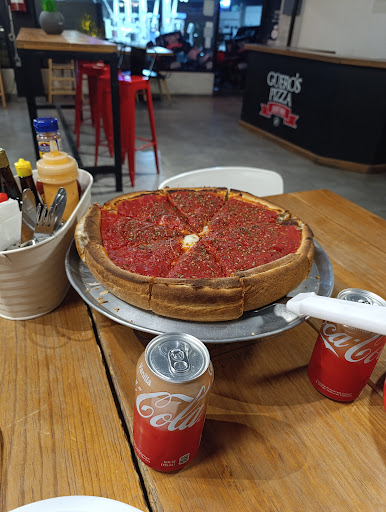 Hace unos días fui con mi familia a comer porque vimos un video sobre la pizza estilo Chicago, realmente teníamos altas expectativas y nada fue lo que esperábamos... Para empezar, no existe como tal un "servicio" llegas y tú mismo tienes que acercarte al mostrador a pedir tu pizza (bueno, eso puede ser aceptable), cuando hicimos el pedido claramente especificamos que lo queríamos sin un ingrediente, habían pasado como 40 minutos de espera y la pizza no llegaba por lo que uno de nosotros se levantó a preguntar y la persona del mostrador groseramente contesto "que no me escucharon que les dije que tardaba una hora?" Ya desde ahí me molestó muchísimo porque de las cuatro personas que fuimos, ninguna escuchamos que en algún momento nos dijeran que tardaba tanto y eso que mucha gente, no había. Pero bueeeeeno, seguimos esperando, minutos después se acercan a decirnos que se habían equivocado con el pedido y que le habían puesto el único ingrediente que pedimos no se agregara, al final nos hicieron un descuento en el total de la cuenta por el error pero lo que termino con el ya mal momento que estabamos pasando es que mientras comíamos, nos salieron chimenes en la mesa. Me parece que tienen varios detalles que solucionar entre la higiene y la mala...