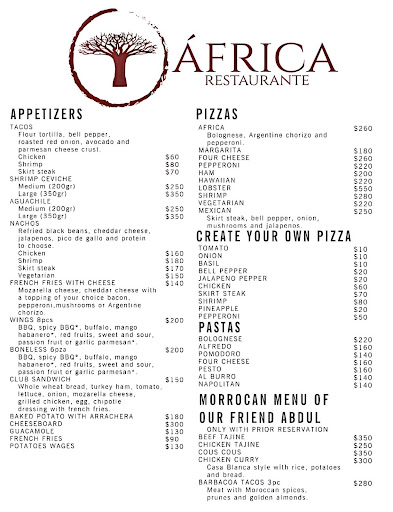 We recently dined at Africa and it was nothing short of exceptional. The warm lighting, elegant décor, and soft music created a welcoming atmosphere.