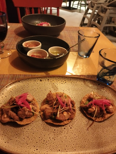 Read moreLa comida y el servicio muy bien. La cochinita deliciosa, los postres originales aunque siento que es difícil identificarlos como un postre mexicano, pero se entiende el propósito del chef. Yo escogí la papayas nixtamalizada y me encantó porque tenía años que no encontraba este tipo de dulce. Delicioso. Tal vez si hace un postre enfocados en los dulces mexicanos haría una unión con la tradición. Lo que no me gustó del restaurante es que como esta abierto hace mucho calor y había muchos mosquitos que nos picaron y aunque la cena estuvo bien estábamos tratando de comer rápido debido a los moscos y el...