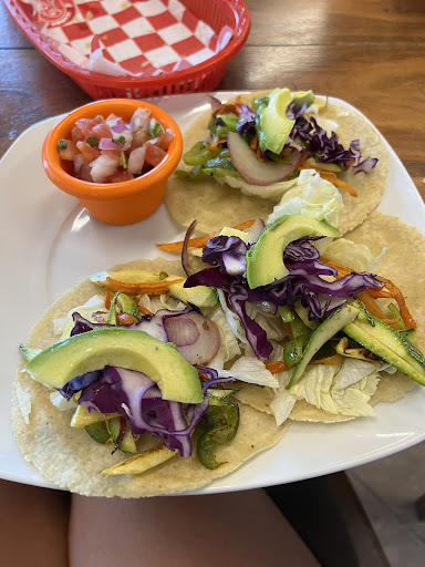 Pleasantly surprised! I'm staying next door at Colorbox, I only have fruit and thought I'd try this place out. As a vegetarian/vegan, I received a decent + very fresh and tasty portion of vegetables with rice and beans sauce, plus tacos with a variety of home-made sauces, for 100 pesos! Considering this is the only restaurant in this area they could be charging a lot more, but they don't. For this they deserve y/our...