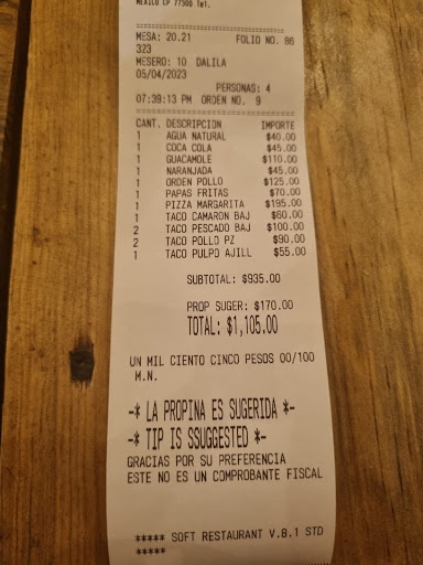 Read moreQuite expensive depending on how long you’ve been in Mexico- we’re used to getting 5 tacos for 55 pesos, they’re charging 100 pesos for 3. The Diablo fish tacos are quite tasty, but I was definitely still hungry afterwards. Beers are 55 pesos but they also charge a service fee, so ended up being 125 for two beers. I think if you’re on an island vacation and you wanna ball out, this is a great place to do it! But if you’re a long term traveler, I would say skip this place and go eat at the street carts or many other mexican restaurants...