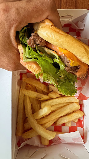 Great casual takeout burgers in the style of California in-n-out burger sauce. Simple limited menu and great prices. Burger meat is on the smaller side, healthier appetites may want 2! Very friendly and helpful service. The location is also shared with an upscale Mexican food restaurant. Also available on delivery apps.