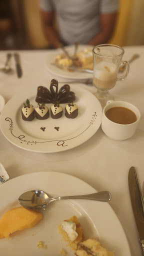 Great food, impossible not to find something you like. They have chocolate covered fruits almost every morning, lots of fruit options, meats, fish, pastries, omelet and pasta stations, crepes, etc. Huge variety. They also have a self serve coffee machines that make great latte and cortado coffee. Fresh juices, 5-6 varieties, served every morning. Waiters are attentive and friendly. Do not pass the soups they serve for lunch, every single one I tried was delicious.