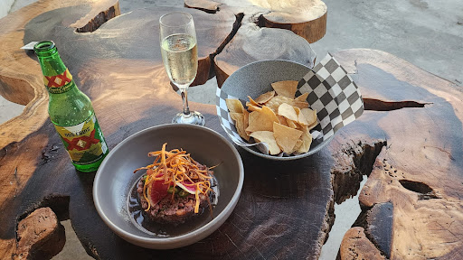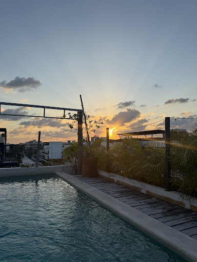 What a hidden gem in La Veleta! I stumbled upon this place on Instagram and I'm so glad we did. Such a good vibe rooftop- the music was great and there's also a smaller pool that you can use. On Mondays they have salsa & bachata nights & on Sunday it's a burger special with free beer. Hugo and the staff are so kind and attentive! We ordered drinks which were reasonably priced and have such unique mixtures! Camaleon Cubano & Conejo Malo cocktails are 10/10! For food we got Elote, chilangas for starters- all were so tasty! Then as a main we got the beef burger- let me tell you- it was sooooo good! Flavourful, thicker (not smash burger!!) and juicy-probably the best burger we've had in Tulum (and we've had many here)! I really wish them all the success and we will definitely be coming back! Take note: you have to climb 3 floors of stairs to get to the rooftop and there is ample...