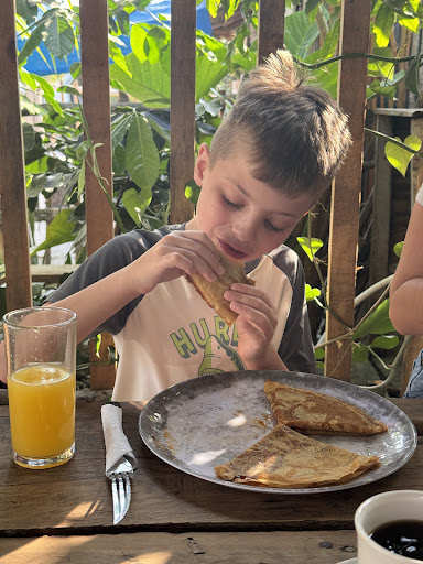 This is THE SPOT for breakfast, lunch and supper! Insane atmosphere, amazing food, we really felt like family with Coco, her husband and her family. If you want authentic and kind people, this is the place to be. It’s not the typical Tulum touristy restaurant. First time we came here was for breakfast, the kids loved the orange juice freshly squeezed, the pancakes, and the dulce de leche crepes. the wife and I both had chilaquiles with eggs. I had the red and she had the green. Both were phenomenal. We skipped lunch because we were so full. Such a hearty meal. We weren’t expecting it. Later that same day, we came back to try it out for dinner. We had the Quekas de Mais with chorizo, it’s essentially a sandwich/fajita made with a huge homemade corn tortilla (i’m celiac - gluten free) and we loved this place. This is a gem in the rough. If you compare prices to other places, this is a great value restaurant. Don’t let the road deter your journey. Come walking or biking, or if you’re by car, just drive slowly. Muchas gracias Coco y Diego. Nos vemos mañana...