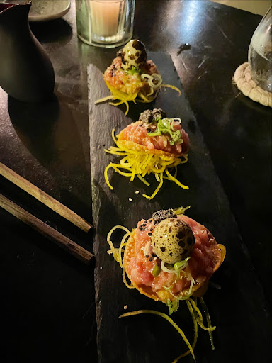 Read moreI absolutely understand why this restaurant has earned its perfect 5-star rating - the attention to detail and passion they put into every dish is simply incredible. The presentation alone was breathtaking, from the artfully arranged oysters topped with silky salmon sashimi and vibrant ikura on rustic wooden boards, to the elegant sashimi tartare with quail egg yolk served on sleek black plates. But this wasn't just beautiful plating for show - every garnish, every delicate carrot julienne, every component worked in perfect harmony to create a complete flavor experience.