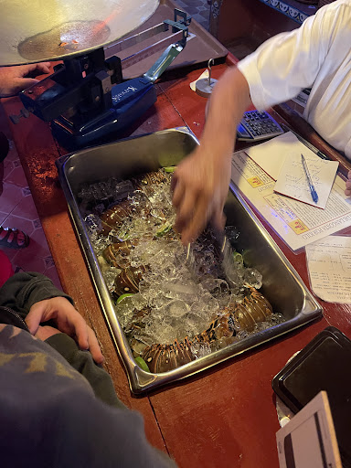 We were out for an evening walk with my 4month old baby. A lady on the beach recommended the Key-lime pie earlier that day. We stopped in and asked if we could look around at the place! It was amazingly decorated with shells and aquariums with live fish! Beautiful! Anyways the gentleman even let us feed the fish a pinch of fish food, and my baby was happy to see the fish chase the food. I bought a corona and asked him the price for lobster. 900 peso for 300 grams. I said id try it out! It was great! We got 3 - half tails. And was very good with the garlic butter. Yummy! My wife ordered fish fingers., it was grouper fingers. DELICIOUS! I Recommend dipping them in cocktail sauce. Anyways the bread was soft and fresh. Butter was rich and creamy, food and service was amazing. 10 out of 10. It was expensive. But lobster isnt cheap. And if you want fresh seafood, you definitely cant cheap out! Lol ... anyways we finished with a key-Lime pie to take home. It was soooo good best pie iv ever had. Ate it in the hotel room. I wish i had more money. Id go back tomorrow! 🤣 thanks guys awesome vibes. Total was 2000 pesos for a great experience....