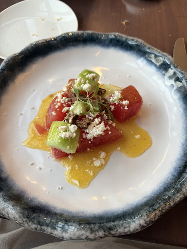 Watermelon Salad (Orange & Ginger Sauce, Feta Cheese, Walnuts, Cucumber, Purslane) • My wife loved this one. It wasn’t my favorite, but it was well-prepared, with an excellent presentation.