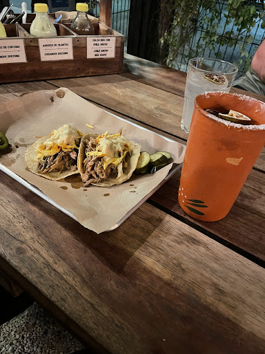 The place is small, only several tables, however the tables are pretty long, they can be shared. That is what we did because no empty tables were available. We ordered several beers and one naranjada, a 250g brisket, a corn, potatoes and coleslaw. The food arrived shortly. Everything was very fresh and tasty especially with the selection of sauces that are on the table. We paid for everything around 700 pesos.