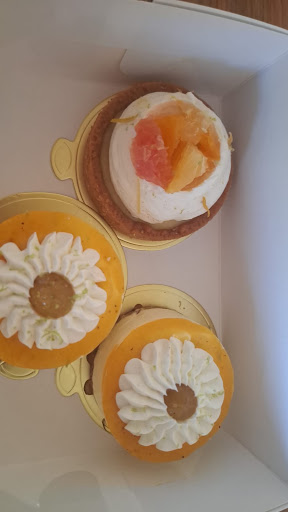 siempre he dicho que las cosas buenas se deben compartir, y esta vez no será la excepción, tuve la fortuna de conocer este negocio por ¨casualidad¨ Mi hermano ama las galletas de chispas de chocolate de ahí y me mando por una, y al comprarla mire como pasaban con una charola de postres tan hermosos que me atreví a preguntar de que eran.... bueno ahí empezó mi perdición jajajajajajjajaja (tarta citrus) UNA DELICIA !!!! en toda la extensión de la palabra. en mis 29 años, si si tengo 29 hahahhaha he probado todo tipo de delicias desde el norte hasta el sur, y este negocio estará en mi top 5 de los postres mas ricos que he probado. esas 5 capas son tan exquisitas y una muy diferente a la otra que es una bomba explosiva de sabores para el paladar, y no exagero... primera capa una deliciosa galleta, segunda un jarabe que pareciera ser una combinación de toronja y lima o naranja y toronja, deliciosito, tercera una cuajada al parecer de naranja o toronja una crema esponjosa super rica pero nada empalagosa, cuarta, un delicioso mouse de infusión con esos cítricos y en la cima trozos bien cortados SIN SEMILLAS de toronja, naranja, y creo que lima..... la que creo esta tarta de verdad tiene el don de la repostería, el sazón en sus manos y una inteligencia en los sabores impresionante. quizás este mensaje no lo lean muchos, por lo largo que es pero en verdad, de cerrazón, agradezco que existan personas que les apasiona lo que hacen, que aman ver en sus creaciones la felicidad de los clientes en cada bocado. solo les deseo un éxito avasallador, y un crecimiento rápido, jajaja que ese postre deben conocerlo sin duda alguna todos los amantes de un bocado de cielo
