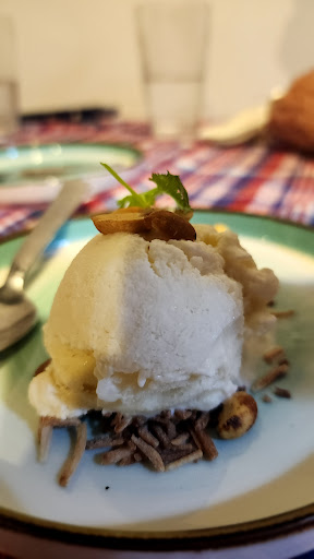 El helado de coco, receta especial de la familia de la chef, me sorprendió mucho, texturas y sabores...