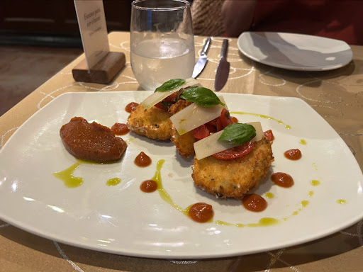 Things we'd recommend they change: while we loved having the live music and it was songs we loved too, it was WAY too loud. We were sat at a table near the entrance and almost right next to the musician. We should have asked to move. We could barely hear each other talking. the lights for the wall art were extremely bright, which made the entire restaurant even brighter and not necessarily the dark, romantic Italian restaurant we had expected