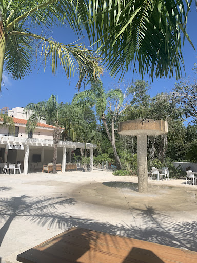 Located in The Market in Puerto Aventuras, a cute collection of restaurants and bars near the entrance to town. Very nice arranged with a great water feature in the middle. Great venue for families with children and/or pets.