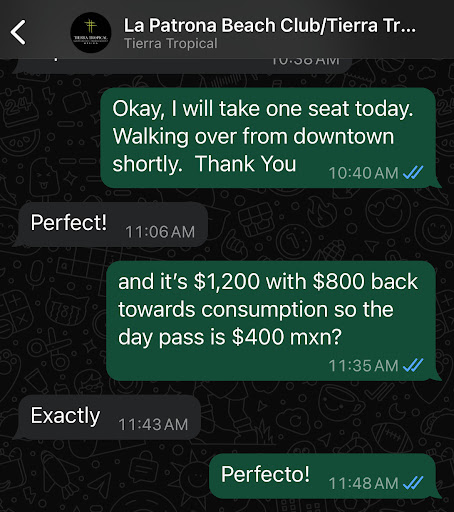 The bottom line is: if a restaurant or beach club quotes you a price, they should honor it. Always double-check your bill and hold them accountable—that’s only fair.