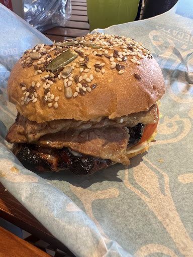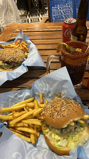 Comida: tienen hamburguesas, cortes de carne y algunos boneless, a decir verdad eh tenido muchas malas experiencias en q las hamburguesas son muy pequeñas, pero al momento que pedí la mía (hamburguesa queso tocino con papas a la francesa) ocupaba la mitad del plato, estaba ENORME y deliciosa sobre todo, mi acompañante se pidió una clásica pero de igual forma era de un tamaño grande. Algo que quiero agregar son las bebidas, no hay una gran variedad pero si esta lo necesario, 2 agua de sabor, los refrescos en lata y las bebidas con alcohol.