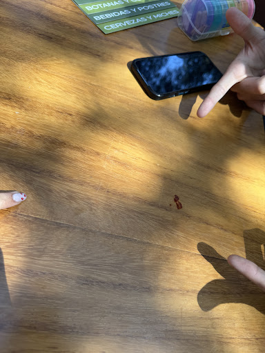 (Foto de cuando la mesa duró así mucho tiempo) Tuvimos que hablarle al mesero para ver si nos podía acercar nuestras bebidas, salsitas, limones, etc.. muuuuy despistado el chico 😣 y solo tenían una mesa más que la de nosotras.