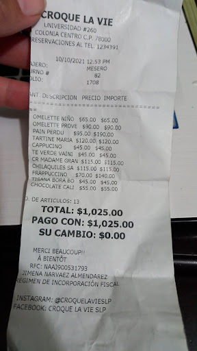 Read moreTenia altas espectativas del restaurante y aunq no nos trataron mal creo q esta un poco sobrevalorado costo proporciones y entiendo quizas desconozco porciones y procedimientos pero me falto ... sobretodo la atencion amable, pero muy tardada del chico que nos atendio, llegamos y esperamos a otros amigos pero fuimos atendidos muy lento y a distinto tiempo aunq casi pedimos igual; ya que nosotros estabamos esperando a mis amigos pero todos comimos a destiempo y las bebidas casi ni llegaban... se hicieron varias consultas al chico que nos atendio y si nos repondia pero la verdad no nos ayudo mucho por q como q estaba presionado o no sabia como explicar esto sobre todo por que llevamos a mi pequeño y no sabiamos que pedir para su desayuno ... mas que critica es aportar de manera constructiva que se podria capacitar mas al personal ya que quizas otras personas no han tenido la oportunidad de estar en Francia y algunas cosas se desconoce y no se esta obligado a saber, sin embargo le apuesto a que puedan pulir detalles para q sea una experiencia mas grata al visitarlos, por medidas y limpieza excelente.