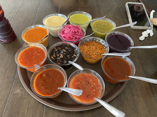 Read moreMuy buena atención al cliente, excelente servicio. Tuve muy mala experiencia con los tacos, la tortilla estaba muy fría y dura al llegar a la mesa. El sabor de las 8 diferentes proteínas que pedí (Bistec, Trompo, carnitas, asado de boda entre otras) estaban OK, algunos ricos otros no tanto. Sobre las 12 salsas se veían muy bonitas al llegar a la mesa, me encantó la variedad… 2 de ellas estaban pasadas, con mal sabor, el resto estaban “Ok”.. solo me gustaron 4 de ellas. Lo más rico para mi fueron los frijoles charros, que también llegaron fríos pero con buen sabor y las aguas embotelladas de sabor Horchata y Tamarindo. No lo recomiendo, mala...