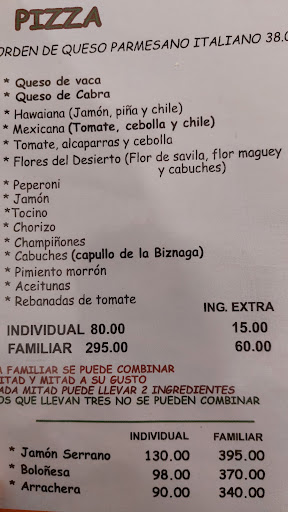 Read moreSu eslogan dice "Cocina Rústica Italiana" pero no cocinan en horno de leña, la masa de su pizza no sabe a una fermentación rústica no hay esas burbujas. El tomate de las pizzas no sabe a nada, tampoco el queso, pedí una hawaiana y la piña no sabia, fue decepcionante. Pedí una pizza que traía flores del desierto y esa sabía bien, nada espectacular solo que los sabores no son familiares ya que lleva cabuches, flor de maguey y flor de sábila por lo que le doy un 7 de calificación, casi no resultaban los sabores. También pedí una pasta carbonara y la salsa estaba demasiado aguada y sin sabor a esa pasta le doy un 5. La atención por parte del personal es buena, el lugar es pequeño pero creo que están sobre valorados, no es rústica para nada y la verdad que no están...