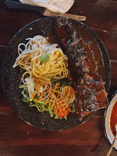 Read moreMuy cerquita de la plaza del centro de Xilitla, está este local que tiene una amplia terraza y está especializado en carnes de calidad. Era un día tranquilo por semana y estábamos solos en el local, con lo que el servicio fue rápido y las camareras muy amables. Probamos varios tacos, cuya carne estaba muy sabrosa y las tostadas de camarón, que para mí gusto las hubiera preferido menos picantes, o como otras veces, con la salsa aparte, además de unas costillas. Aun así, todo rico y bien cocinado. Además de postre nos ofrecieron platano con reducción de vino tinto que además de ser un plato abundante también estaba muy sabroso. Los precios adecuados a la calidad...