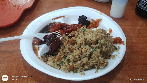 Read more¡Para no volver! el sabor es el mismo que en muchos sitios de comida china. Pedí dos platos grandes para comer ahí los seis integrantes de mi familia pero sólo me dieron los platos con la comida, al pedir platos adicionales me dieron unos pequeños que parecen para gato ¡Y ME LOS VENDIERON A UN PESO CADA UNO!, como esperaban que comiéramos, en las manos? Pedí vasos y me dijeron que no había y tuve que ir a una farmacia a comprar. La carne de res parecía ligas, la dejamos toda y al salir alcancé a ver un señor que igual dejaba la carne masticada por un...