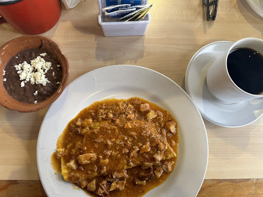 Im putting 5 stars because I have nothing to complain about. I was in an extremely stressful situation and we were meeting to discuss how to handle it. So I want to put less stars. But the honest truth is that their service was excellent, my iced chai soy latte was great, and the pastel or pan dulce de elote (just made of corn but sweet) was more akin to cheesecake without the actual cheese taste than the more dried up or whatever that ive had at other places. The tortilla soup was of course better than anywhere ive had it in the US. My was dying over her carrot cake and i remember it looking really good. The portions were great, not overwhelming but just substancial enough and I was alot more relaxed upon leaving. So i guess it does...