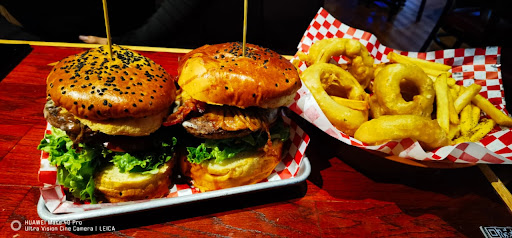 El lugar muy agradable😋 Pedimos un paquete para dos personas, bueno eso pensavamos por que eran dos hamburguesas y alitas y aros de cebolla con papas. 🔺cabe mencionar que nunca aviamos ido y no sabíamos que era tanta comida🔺 Pero nunca pensamos que sería muchísimo de todo 🤣 Las hamburguesas de arrachera riquísimas y muy grandes 🍔😋 En el combo que pedimos de alitas y boneles era como 1/2 kilo de cada uno 😱Tienen variedad de sabores para tus alitas y boneles!!!tuvimos que hablarle a un amigo que vivía por la zona para acabarnos todo. 🤪 En total es un combo para 3 personas. Los aros de cebolla y papas muy ricas también 😁 Las 2 micheladas muy ricas y buen precio. 🍻 Pedimos 4 cervezas Muy atentos, siempre preguntando que hace falta!!! En total pagamos $1000 +...
