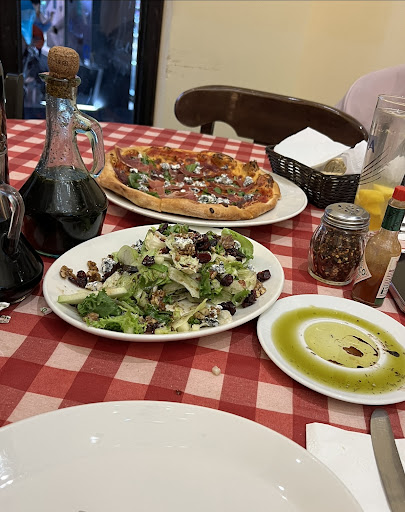 Pésimo servicio, nunca había catalogado un lugar con un estrella. Son varios puntos: 1- ofrecen servicio tenedor por tiempos, ok, pero entre plato y plato demoran más de veinte minutos. Le comenté al gerente de que uno se sentía como comensal de segunda ya que a las mesas de al lado ya les habían servido y eso que llegaron después que yo. Sus argumentos era que se les juntaban las comandas y justificaciones diversas, pero que para nada discriminaban. Me comentó le ofrezco gratuito el servicio suyo, solo me paga el de su hijo. Obvio solo lo comento al final me cobraron mi servicio, y la vdd tampoco estoy para que me regalen, así que no tengo problema en pagarlo. 2- el menú del niño incluía por un precio pizza y malteada, si no reviso la cuenta la cobraban por separado y no en ese paquete, igual otra estafa. 3- lo importante la comida, ensalada pues vinagreta de Sams y lechuga arandanos y nueces, nada sobresaliente, normal, porción individual. Su pasta ahi si deja mucho que desear, a la boloñesa, realmente es mas bien una pasta, secona y con un "caldo" de carne molida, ya que trae mínimos trozos de carne. Su Pizza individual tres queso, si es rica, pero hasta ahí. Para los 28 minutos que tardan en llevarla, pues se convierte en una pésima experiencia. Lo único rescatable es la amabilidad de la mesera. Realmente no recomiendo acudir, a este restaurante, habrá que indagar en otra sucursal si es genera, o es por la pésima direccion...