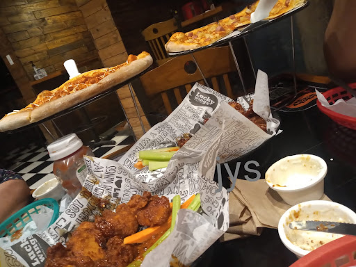 Pésima experiencia . Asistí el día de ayer con mi acompañante y realmente lo que ofrecen deja mucho que desear en relación al costo-beneficio. Pedimos aros de cebolla,un combo de alitas y boneless y una orden de boneless. Todo mal! Las papas Saratoga correosas, las salsas no fueron las que pedimos, los boneless y las alitas todas mal salseadas con espacios secos, los bastones de apio y zanahoria deshidratados(secos y blanquecinos), Las alitas totalmente secas, al parecer solo las reciclan porque jugo no tenían y sabían a pollo de muchos días almacenado, no encontramos frescura en ninguno de los platillos que pedimos. Los aros de cebolla llegaron calientes pero totalmente negros y con un sabor espantoso por el aceite que se nota que no han cambiado en mucho tiempo. Quisiera decir que lo único rescatable es la cerveza pero desafortunadamente llegaron si no calientes, no tenian la temperatura adecuada para un consumo refrescante. En fin, pésima experiencia, por supuesto, no regresaría y menos recomendaría un lugar tan abandonado en el tema de calidad en...