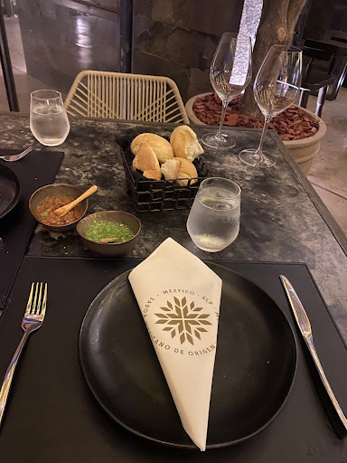 I walked my dogs past this place for months, and marveled at how empty it was for such a gorgeous space. I'd say "we have to try this place", but I'd read mixed reviews of both the food and service. We went as a table of 4 last night, and the result was pretty good. First, the service was impeccable. Our waiter (wish I'd gotten his name) was attentive and clearly well trained, in terms of his plating and presentation skills. The captain checked on us multiple times to make sure everything was ok. The cocktails are diverse and well-prepared. The panela cheese appetizer was kind of boring, but the ceviche de salmon was one of the best dishes I've had in a year in Mexico. Fantastic! The mains were a mixed bunch. My wife's sopa azteca was good but not great; the tacos de friol tiesos were good, the camarones coco were great. But my pollo pibil asado was disappointing. "Pibil" implies a technique to me; that the chicken is actually slow roasted in achiote. This was plain roasted chicken served with achiote sauce. Not bad, just not as I expected. The menu offered numerous other good-looking dishes, so I'm sorry I ordered the chicken. The "rol de romero" dessert is outstanding and unlike anything I've tasted before. I'd go back (for that ceviche dish if...