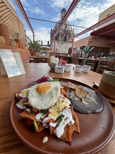 Had breakfast at Natal this morning. Its walking distance from my hotel. Its in the 3rd floor so you to have to walk up a bit of stairs but let me tell you the VIEW and food are definitely worth it. My server was a lovely young lady that was very attentive. The rest of the staff seemed pretty friendly too. I chose the red chilaquiles with a fried egg on top. The only thing I can think of to make this place THE absolute best would be the music selection. They played a lot of contemporary American music and I just think the vibe and architecture would be more suited for romantic Mexican boleros. I will definitely be back the next time I am in...