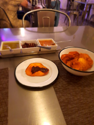 Read moreEl lugar fue una sorpresa. He pasado muchísimas veces por ahí, pero nunca había entrado. Fue una noche tranquila, con música en vivo y buena comida. Ofrecen un menú variado, diferente, con precios accesibles. La calidad de la comida es muy buena, al igual que el servicio. Los chips de camote son recomendables, acompañados de mermelada de jamaica y salsa de nopal 👌 Por fuera, el lugar no resulta atractivo. El color de la fachada es apagado y, por dentro, el mobiliario no da una sensación acogedora, las sillas y mesas son grises. Definitivamente, el diseño no va con su menú ni con la oferta cultural, son lo opuesto. También sería recomendable que contrataran un buen diseñador, ya que la publicidad que tienen en la pantalla es buena idea pero el diseño es...