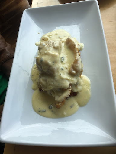 La comida estuvo excelente, el robalo perfectamente cocido y la salsa de Gorgonzola sobre una cama de papas fue genial.