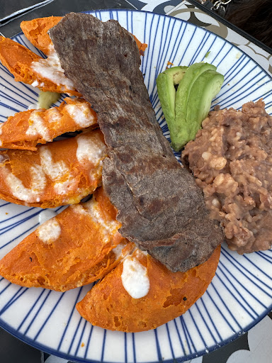 Read moreEl lugar es muy comodo y con una vista hacia el techado de la iglesia espectacular. Pero con un servicio del personal no tan profesional, se miraba a los meseros en el teléfono y hasta sentados por el área de los baños de la terraza, pero sin embargo tuve un servicio cómodo. Recomiendo las micheladas porque están bien preparadas y rendidoras. Al aspecto de la comida que pedí, fue menos de lo que esperaba, los boneles estaban duros por freírlos, ya sea por mucho tiempo en el aceite o que el aceite ya esté bastante usado, el plato de Rib eye estaba muy simple el corte, no me preguntaron que a qué termino lo deseaba y parecía más a arrachera u otra carne. Después los camarones al coco estaban igual que los boneles, bastantes duros, incómodos de comer por lo mismo, sea que sean refreidos o que el aceite esté en mal estado, y tmb el método de preparación no es como tal a su orden y origen del platillo, ya que solo eran camarones fritos con rayadura de coco encima. Se que no en todos lados los platillos son iguales porque está el criterio y diferente método del chef y que el lugar no sea tan gourmet pero que si den los alimentos como corresponden. Fuera de ahí, me gustó el lugar por su vista y decoración, los precios son accesibles y hay una gran variedad en platillos y bebidas básicas...
