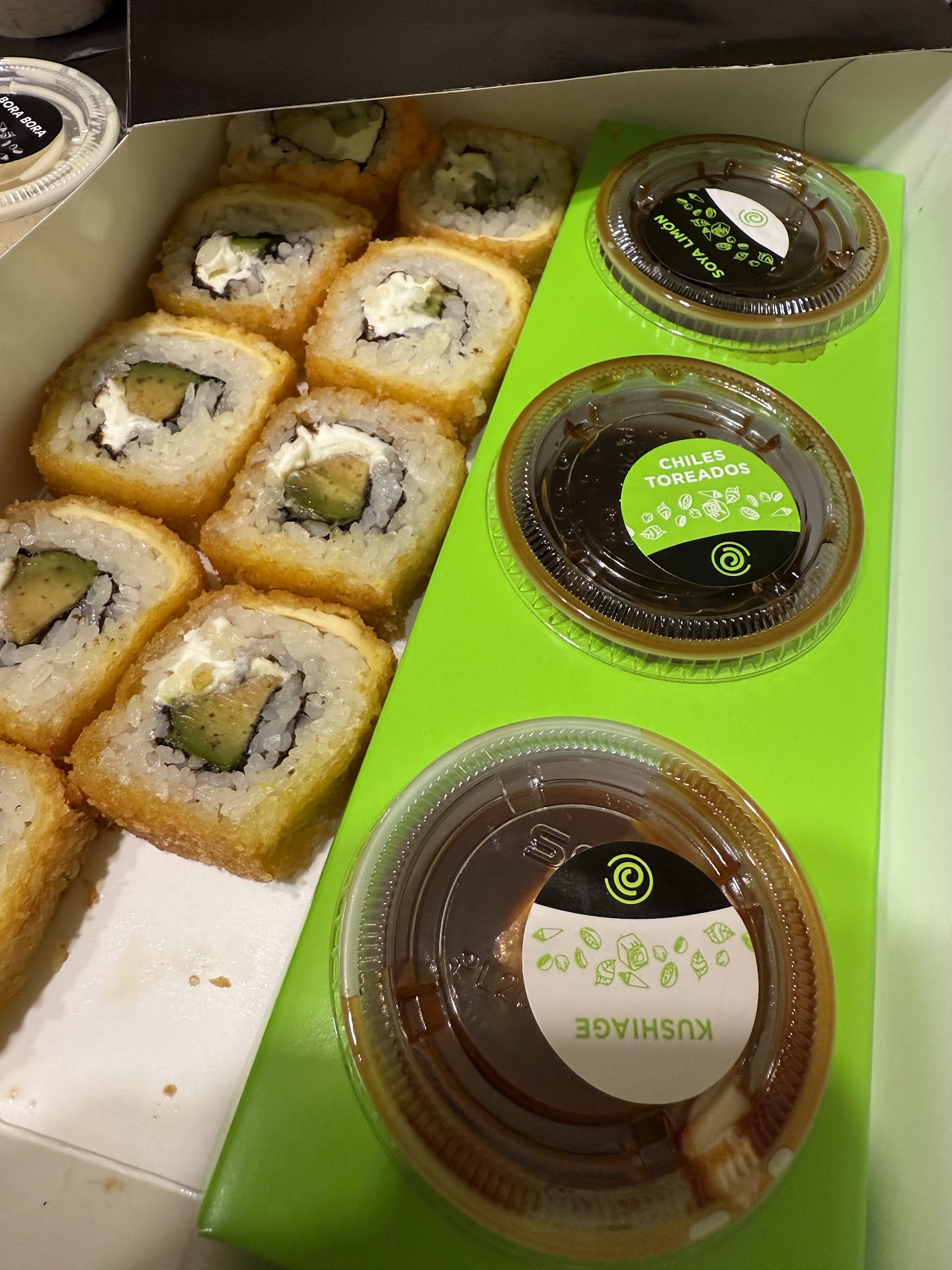 Read moreCambio mi calificación de 4 a 1 estrella , el, día de, hoy visite el establecimiento con mi novia ,la entrega , servicio y presentación fueron de lo peor , tiempo de más de una hora cuando informaron de 20 min a 30min , actitud irrespetuosa, mala presentación de los platillos y lo peor aún en estos momentos , sin ninguna higiene, no somos los únicos comensales que vimos poner al recepcionista ,el bote de basura junto a la comida que estaba por llevar personal de, Uber EATS mientras otro colaborador preparaba platillos sin guantes y posterior a haber limpiado ,obviamente la queja será colocada esperemos se tomen las medidas que sean pertinentes , dejo una foto de el intento de GYO ROLL. La visita se efectuó de 8 a 10 pm por si llegara ser útil la...