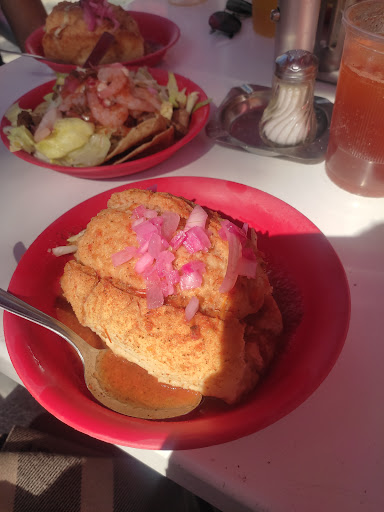 Leí sus reseñas y muchos comentarios son muy groseros pero se les olvida que muchas comidas no serán idénticas fuera del lugar de origen, el lugar tiene buen ambiente, los meseros son muy amables y creo que eso se agradece bastante, sobre todo andan muy sonrientes eso sin duda suma puntos buenos al lugar,lo demás como bebidas están ricas, el unico detalle que yo le vi fue el bolillo y lo de la lechuga en las doraditas pero la salsa está bien :)