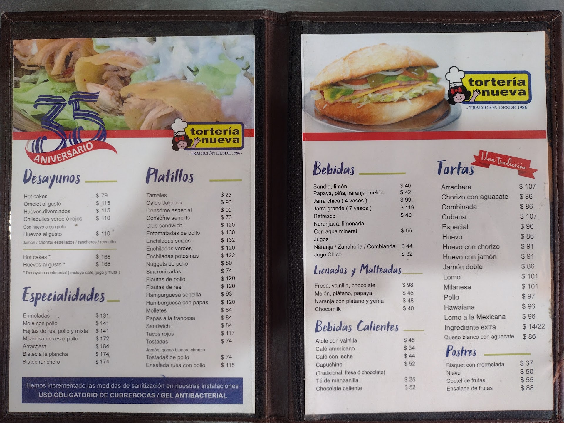 La Torteria Nueva es un lugar súper rico para comer Tortas, variedad de agua de sabor, entre otros platillos de la cocina mexicana. Yo visito el lugar desde niña y siempre he sido fan de sus tortas, pero he estado permitiéndome probar más platillos de su menú, como las enchiladas suizas que aunque si las hacen un poco diferentes son muy ricas y la porción muy generosa; el Caldo Tlalpeño muy rico si andas antojado de un caldito caliente; el Consomé Sencillo lo consumí el día de hoy y me lo sirvieron medio frío, eso no me gustó pero la porción igual es bastante generosa; también pedí unas entomatadas que aunque la porción es muy buena el sabor me dejó mucho que desear, no saben mal pero tampoco las disfruté, mi pareja pidió una hamburguesa muy rica, la cual olvide tomarle foto pero me sorprendió que todos los platillos ahí son muy bastos y la hamburguesa de ve pequeña y la sirven con pocas papas aunque de sabor cumplió bastante bien. Las bebidas también son sumamente ricas, yo pedí un agua de naranja y uffff deliciosa. Les adjunto fotos. Si no conocen el lugar vayan con tiempo porque casi siempre hay fila de espera, aunque a veces no es tan tardado, hay veces que sí. El servicio está vez me gustó, me tocó una chica joven que nos atendió bien, pero otras veces me han tocado señoras que son un poco especiales, pero al final cumplen con el buen servicio. Yo les recomiendo el lugar porque vale la pena mucho su comida, bebidas y el servicio también...