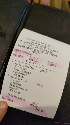 Servicio nefasto, cada vez que vamos se pone peor. La primera ocasión que fuimos todo bien y de ahí en picada. Seguimos visitando por el sabor de la comida pero hoy nos terminamos de convencer para no volver nunca más. Si bien el restaurante estaba concurrido ya todas las mesas tenían alimentos así que no se justifica el tiempo de espera tan prolongado para TODO. Al llegar nos recibe un joven con una actitud muy arrogante y nos dice que solo hay una mesa con tono como si nos hiciera un favor además de decirnos entre dientes que no hay cambio de mesa igual muy grosero. Desde que nos entregaron la carta pasaron fácil 15 minutos sin que nadie nos atendiera porque el chico de la puerta no le notificó a ningún mesero que se había ocupado la mesa. De 3 personas que había atendiendo el área donde nos encontrabamos solo un muchacho se percató de nuestra presencia y le señaló a su compañero que estábamos esperando servicio pero por lo visto lo mandó a la goma porque tuvimos que esperar a que terminara su servicio en otras mesas y muy amable vino a tomarnos la orden al ver que los otros meseros ni se acercaban. De ahí pasaron casi 25 minutos hasta que llegó la comida; para rematar estaban muy secas y corriozas :c Las porciones de papas ya son un chiste comparado con las de antesala. Lo que más nos molestó es que otra mesa que llegó un rato después fué atendida y servida primero y ya estaba a media comida cuando apenas nos estaban entregando la orden :( Después de que recibimos la comida no hubo ninguna otra atención hasta que pedimos la cuenta. El chico que tomó nuestro pedido fué muy amable y se disculpó mucho por la espera pero estaba ocupadisimo y nadie más se acercó a ver si necesitábamos algo, queríamos pedir algo más pero mejor nos evitamos la molestia de no ser atendidos. Si tienen oportunidad mejor vayan a wings Davo, tienen más variedad de salsas y mejores porciones por precios...