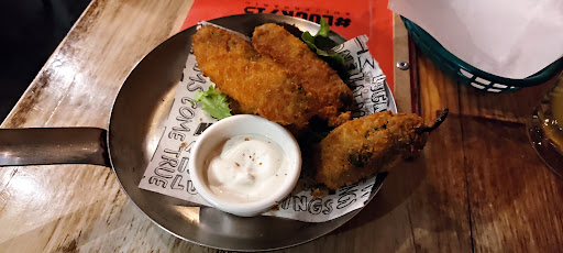 Pésima experiencia . Asistí el día de ayer con mi acompañante y realmente lo que ofrecen deja mucho que desear en relación al costo-beneficio. Pedimos aros de cebolla,un combo de alitas y boneless y una orden de boneless. Todo mal! Las papas Saratoga correosas, las salsas no fueron las que pedimos, los boneless y las alitas todas mal salseadas con espacios secos, los bastones de apio y zanahoria deshidratados(secos y blanquecinos), Las alitas totalmente secas, al parecer solo las reciclan porque jugo no tenían y sabían a pollo de muchos días almacenado, no encontramos frescura en ninguno de los platillos que pedimos. Los aros de cebolla llegaron calientes pero totalmente negros y con un sabor espantoso por el aceite que se nota que no han cambiado en mucho tiempo. Quisiera decir que lo único rescatable es la cerveza pero desafortunadamente llegaron si no calientes, no tenian la temperatura adecuada para un consumo refrescante. En fin, pésima experiencia, por supuesto, no regresaría y menos recomendaría un lugar tan abandonado en el tema de calidad en...