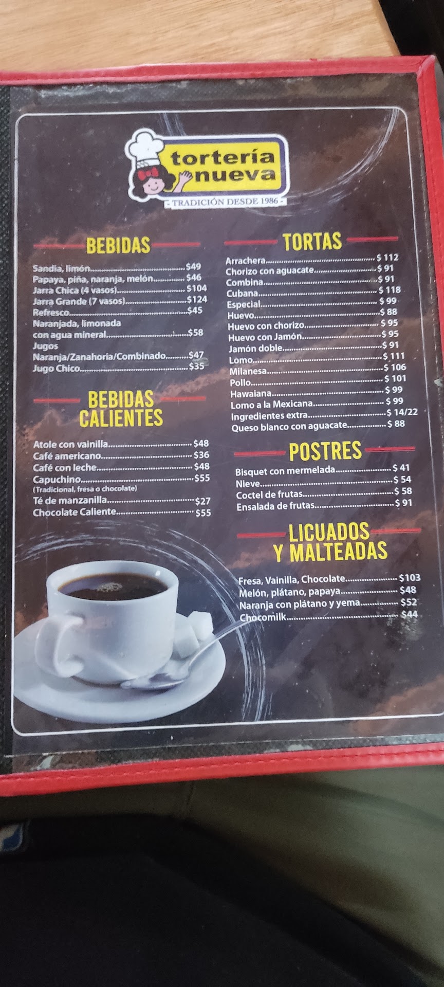 La Torteria Nueva es un lugar súper rico para comer Tortas, variedad de agua de sabor, entre otros platillos de la cocina mexicana. Yo visito el lugar desde niña y siempre he sido fan de sus tortas, pero he estado permitiéndome probar más platillos de su menú, como las enchiladas suizas que aunque si las hacen un poco diferentes son muy ricas y la porción muy generosa; el Caldo Tlalpeño muy rico si andas antojado de un caldito caliente; el Consomé Sencillo lo consumí el día de hoy y me lo sirvieron medio frío, eso no me gustó pero la porción igual es bastante generosa; también pedí unas entomatadas que aunque la porción es muy buena el sabor me dejó mucho que desear, no saben mal pero tampoco las disfruté, mi pareja pidió una hamburguesa muy rica, la cual olvide tomarle foto pero me sorprendió que todos los platillos ahí son muy bastos y la hamburguesa de ve pequeña y la sirven con pocas papas aunque de sabor cumplió bastante bien. Las bebidas también son sumamente ricas, yo pedí un agua de naranja y uffff deliciosa. Les adjunto fotos. Si no conocen el lugar vayan con tiempo porque casi siempre hay fila de espera, aunque a veces no es tan tardado, hay veces que sí. El servicio está vez me gustó, me tocó una chica joven que nos atendió bien, pero otras veces me han tocado señoras que son un poco especiales, pero al final cumplen con el buen servicio. Yo les recomiendo el lugar porque vale la pena mucho su comida, bebidas y el servicio también...