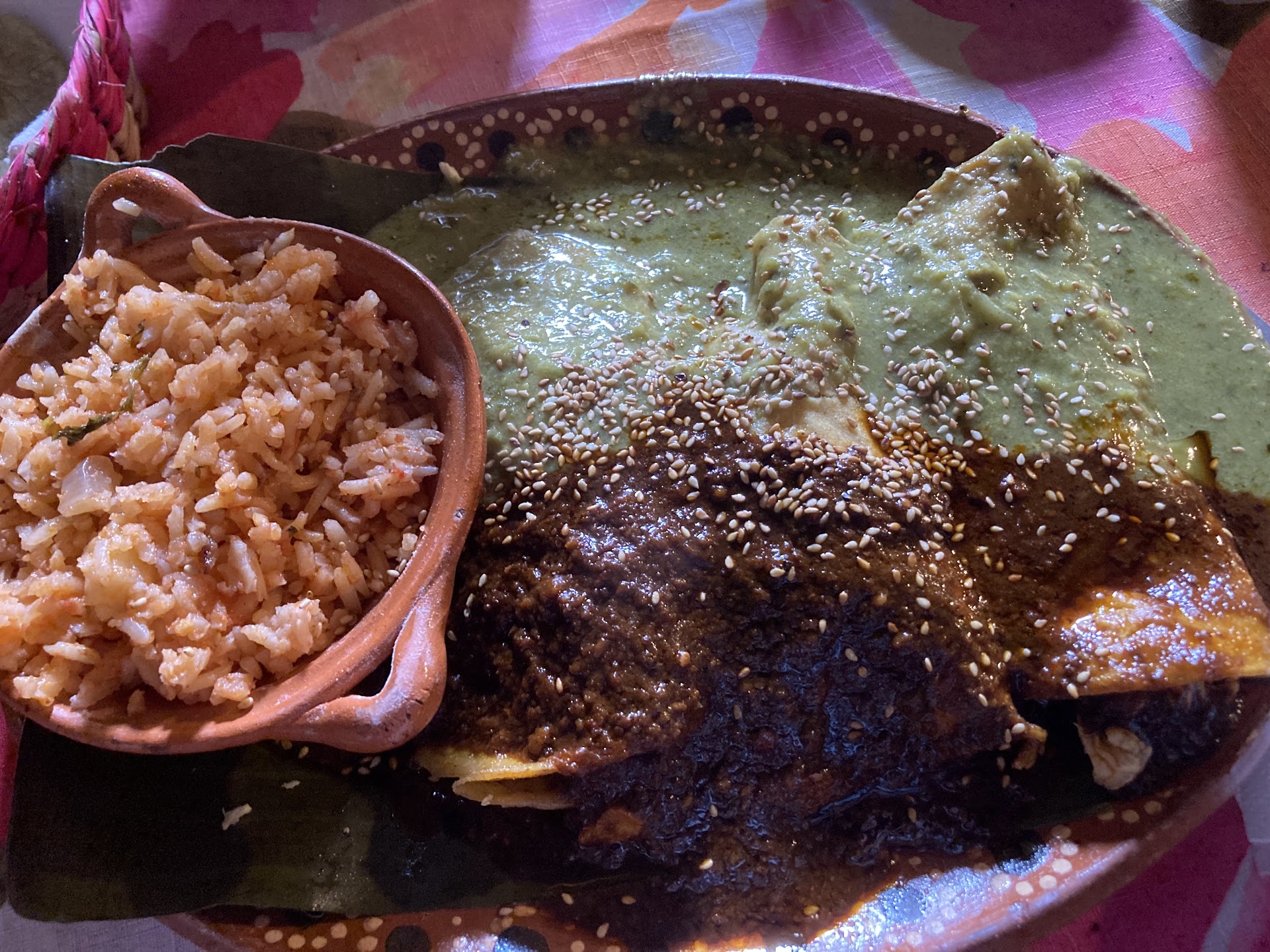 They make homemade nopal tortillas here. We tried the green mole chicken with rice and the enchiladas with red & green mole. All dishes were large and filling, not to mention flavorful and you could tell everything was made with care & passion.
