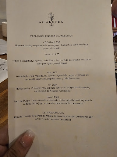 Read moreWe went to Ancestro Restaurante after hearing rave reviews about the place, which opened about 2 months ago. What a pleasant surprise! A simple and intimate setting with a few inside tables and more outside tables. We were warmly greeted and welcomed by the owners and servers. This gem of a place specializes in traditional food from the Yucatan and Quintana Roo. I had the cob corn with grasshoppers, mayo, chili, etc - amazingly good! The Tejuino beverage (fermented corn, lemon juice, chili powder, salt) had a unique, delicious taste. They don't yet serve alcoholic beverages, but intend to in the future. My wife had the Tekken taco and the Chula quesadilla. For dessert, I was wowed by the Marquesitas! A sort of crepe affair with cajeta. My wife was impressed by the guayaba flan. We loved this place and can hardly wait to return! It was a delightful and adventurous...