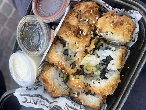 We order to-go, and had asked for Mango in our sushi roll, we paid extra for this and they must have forgot, no big deal we just asked if they could bring some out on the side, instead of doing this the waiter touched my sushi roll with her bare hands pulling it apart, absolutely destroying it with her fingers to finally find some mango in the every middle of the roll. I have no idea who would do something like this, I am still so shocked by the service here. DO NOT order take out or eat here. In addition to this it took 1 hr of waiting to get 2 rolls and a poke bowl to-go.